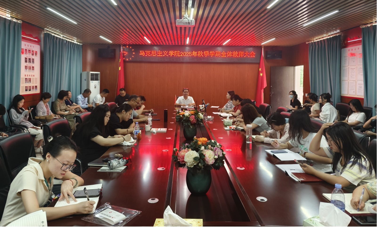 9月4日上午,马克思主义学院在25栋203会议室召开了2025年秋季学期全体教师大会,马克思主义学院全体教师参与,会议由学院党总支书记、院长刘潇潇主持。